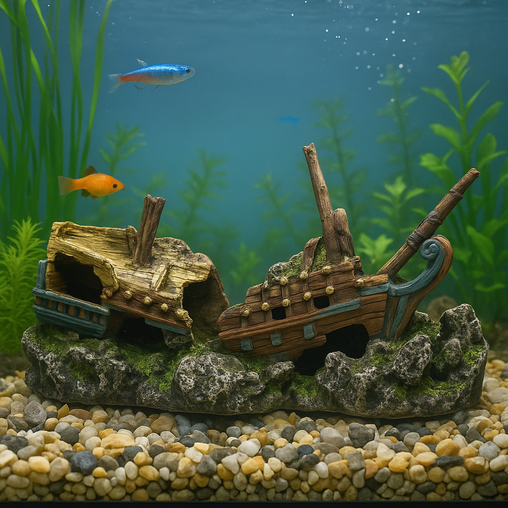 Dieses fantasievolle Schiff aus Kunstharz ist eine dekorative Ergänzung für dein Aquarium und verleiht ihm einen Hauch Amazonas-Abenteuer. Mit seinem verspielten Design bringt es nicht nur Abwechslung in die Unterwasserwelt, sondern bietet deinen Fischen auch spannende Versteckmöglichkeiten. Kunstharz ist ein beliebtes Material für Aquariendekorationen, da es ungiftig ist, keine Farbe abgibt und keine unerwünschten Stoffe ans Wasser absondert – ideal für eine sichere Umgebung im Aquarium.