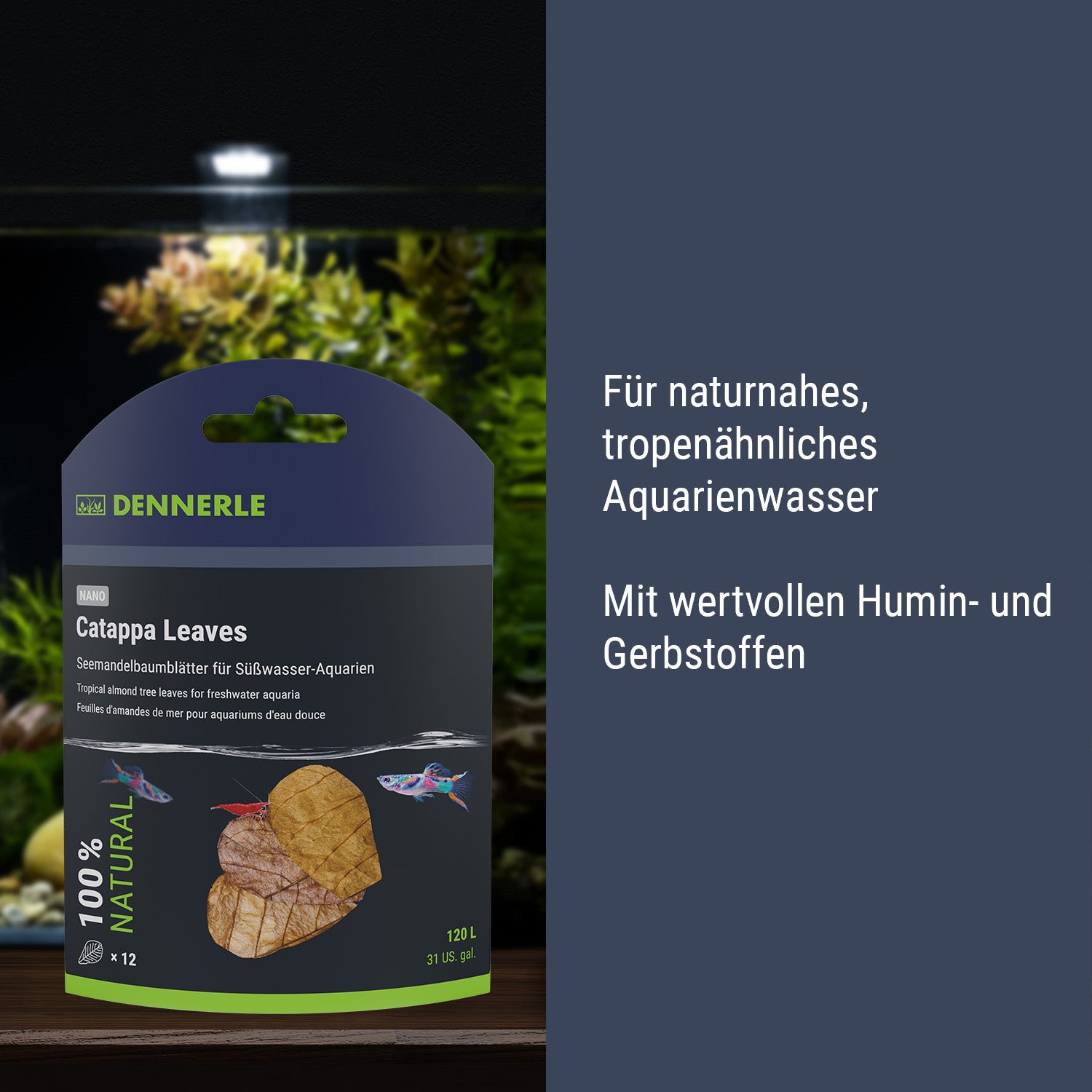 Der Geheimtipp asiatischer Fischzüchter: Die reifen getrockneten Blätter des Seemandelbaums Terminalia catappa fügen dem Wasser Naturstoffe zu, die Aquarienfische und Wirbellose aus ihren Heimatgewässern gewohnt sind. Sie säuern mild an und stabilisieren den pH-Wert. Die langsam zerfallenden Blätter sind ein tolles Ergänzungs- und Ferienfutter für Garnelen, Krebse, Krabben, Schnecken und Welse. Premium-Qualität: direkt vom Baum geerntet, gesäubert, getrocknet, handverlesen.
