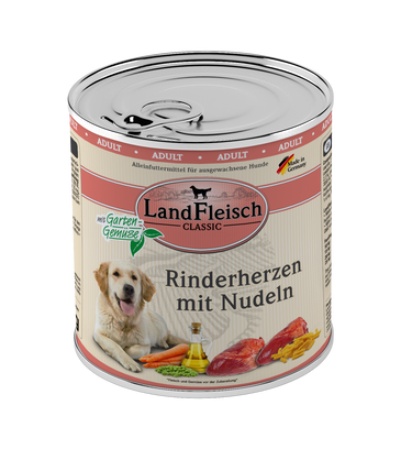 Verwöhne deinen Hund mit LandFleisch Rinderherz & Nudeln – ein köstliches Hundenfutter, das nicht nur gut schmeckt, sondern auch rundum gesund ist!