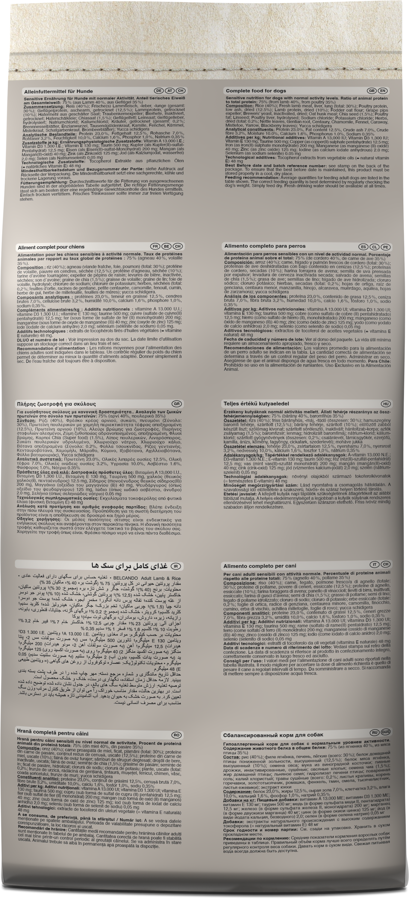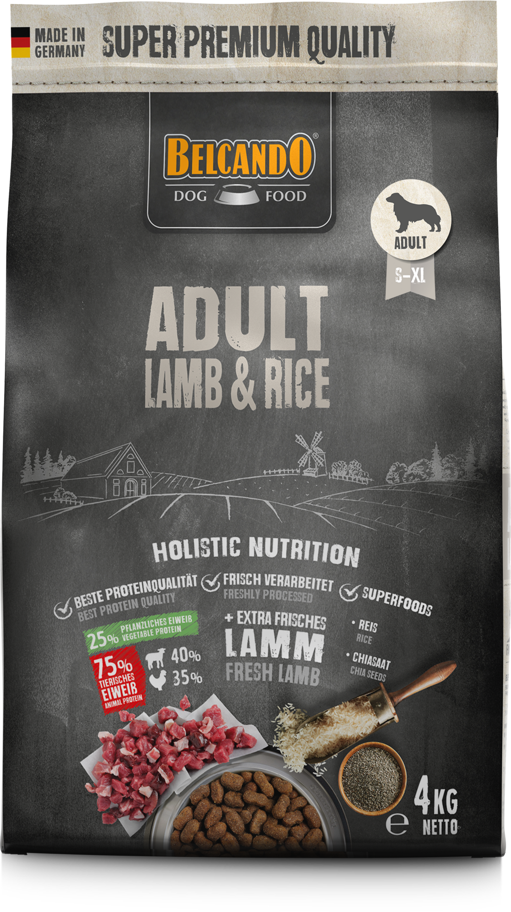 Leicht verdaulich und besonders bekömmlich dank ausgewählter Rohstoffkombinationen. BELCANDO® Adult Lamb & Rice bietet empfindlichen Hunden eine ganzheitliche sensitive Ernährung. Reich an sehr gut verträglichem Lamm und leicht verdaulichem Reis. Chiasaat unterstützt die Verdauung mit natürlichen Schleimstoffen und liefert essentielle Fettsäuren. Das Angebot an Protein und Fett ist auf den Energiebedarf von Hunden mit normaler Aktivität abgestimmt. Anteil tierisches Eiweiß am Gesamteiweiß: 75 % (aus Lamm 40 %, aus Geflügel 35 %)