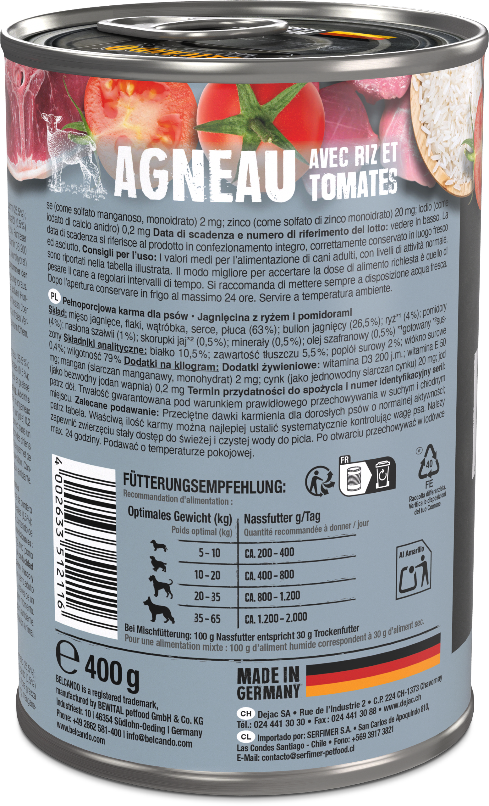 Durchschnittswerte für die Fütterung von ausgewachsenen, normal aktiven Hunden sind in der abgebildeten Tabelle aufgeführt. Frisches Trinkwasser sollte immer zur freien Verfügung stehen. Nach dem Öffnen max. 24 Stunden im Kühlschrank aufbewahren.
