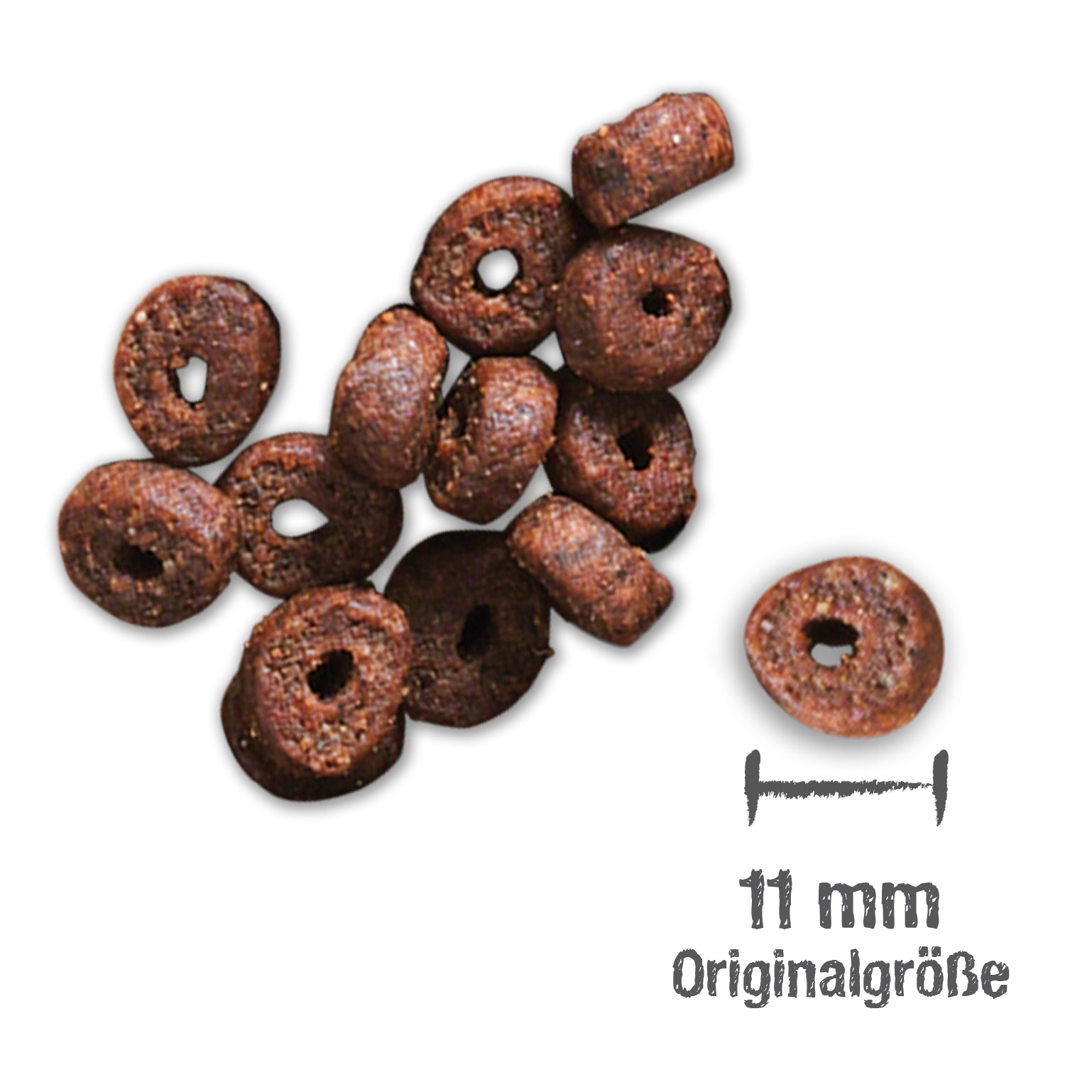 Mischfütterung: 25 g Trockenfutter ersetzen etwa 100 g Feuchtnahrung.