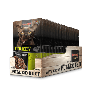 Mit dem neuen „LEONARDO® Pulled Beef“ kommen jetzt auch Katzen in genau diesen Genuss! Jede Portion wird schonend gegart und mit Lachsöl verfeinert. Lachsöl liefert mehrfach ungesättigte Fettsäuren für ein besonders seidiges Fell.