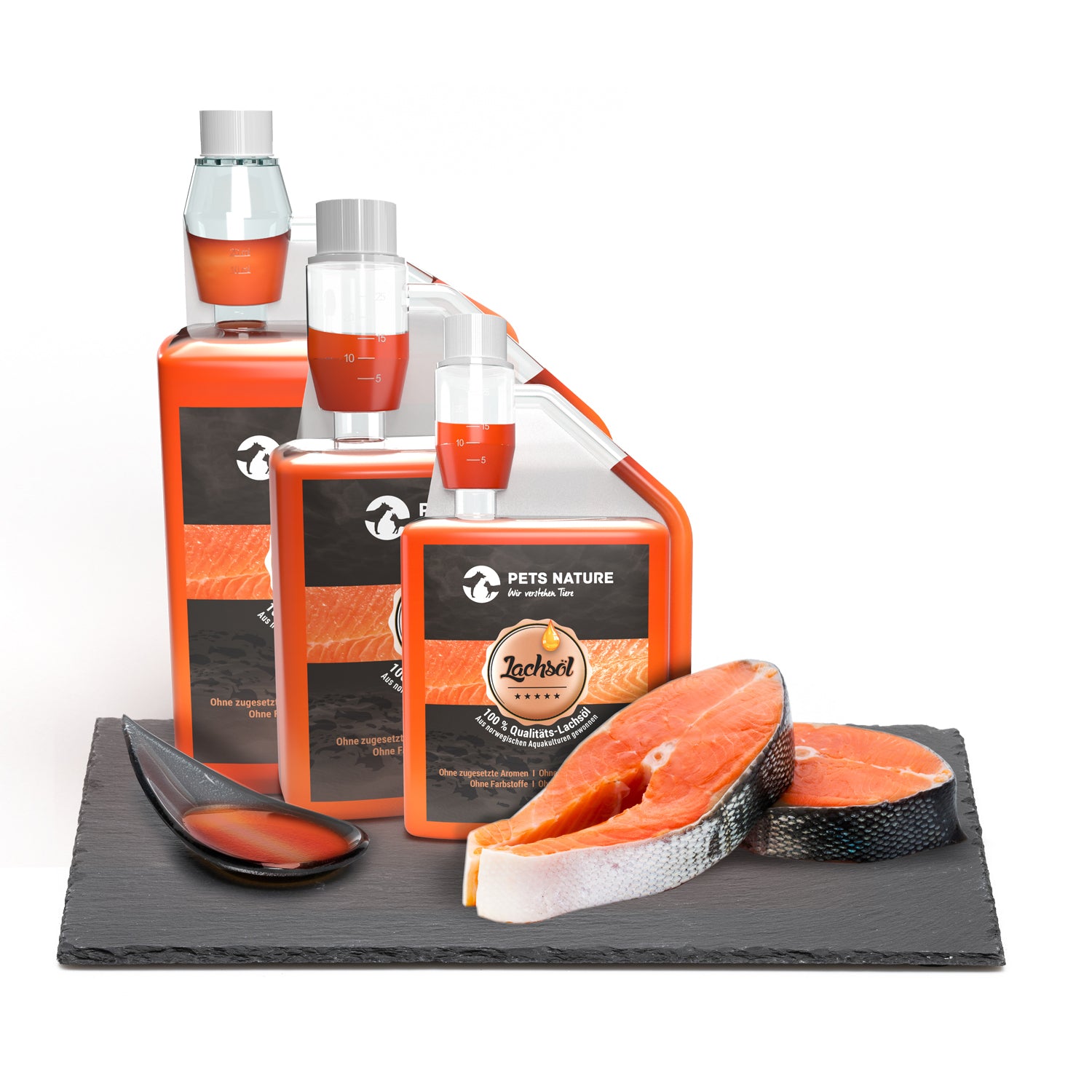 Wir gewinnen unser Lachsöl durch eines der hochwertigsten Ölgewinnungsverfahren. Diese enzymatische Gewinnung ist superschonend, was unser Produkt zum 5-Sterne-Premium-Öl macht. Natürlich ist es auch frei von jeglichen Zusatzstoffen wie Farb-, Aroma- oder Konservierungsstoffen. Wir prüfen es darüber hinaus regelmäßig auf Schadstoff- und Schwermetall-Rückstände. So sichern wir die Qualität zum Wohle deiner Fellnase, denn die Qualität spielt bei Ölen eine große Rolle. Ebenso selbstverständlich gilt natürlich auch hier unser Pets Nature Grundsatz: ohne Tierversuche!
