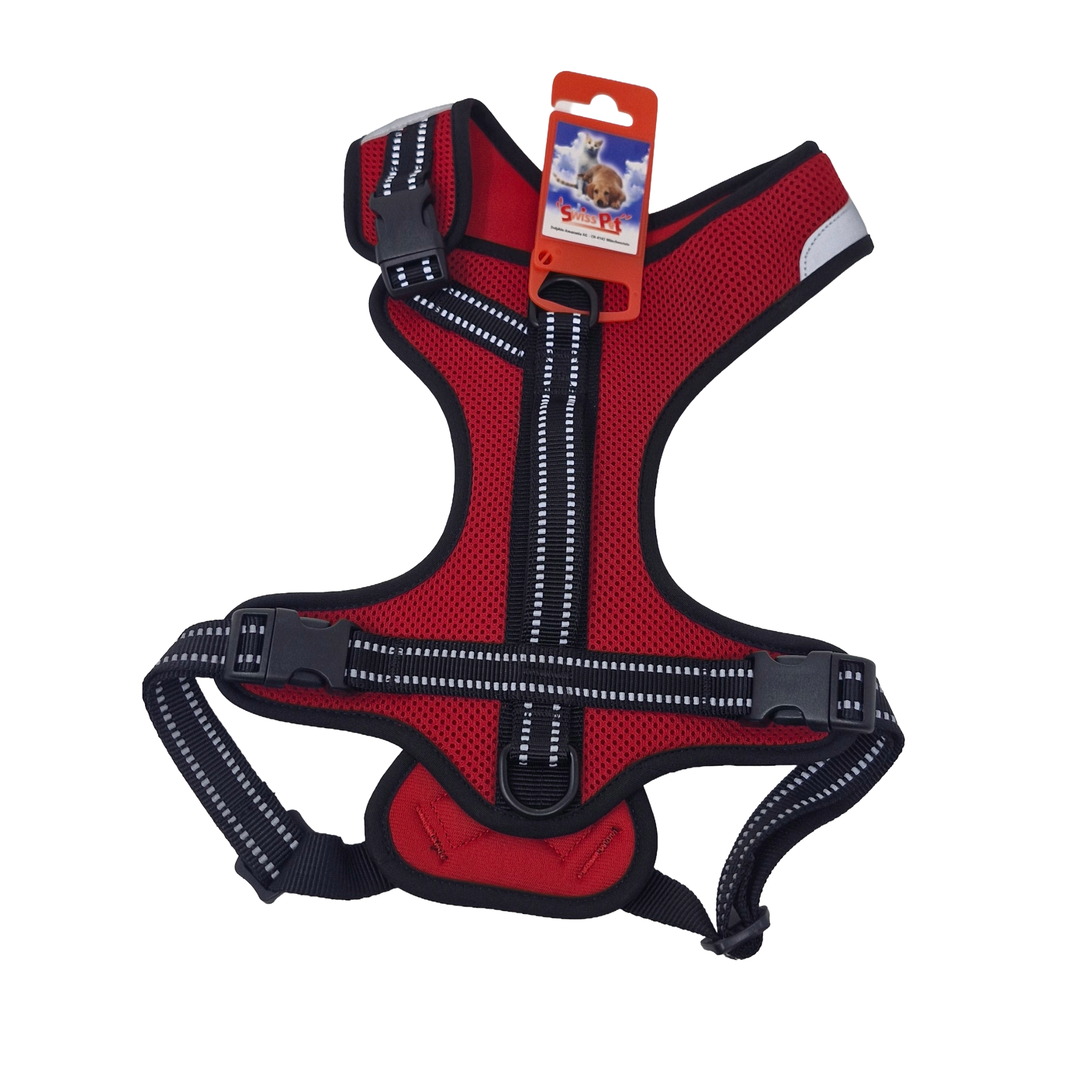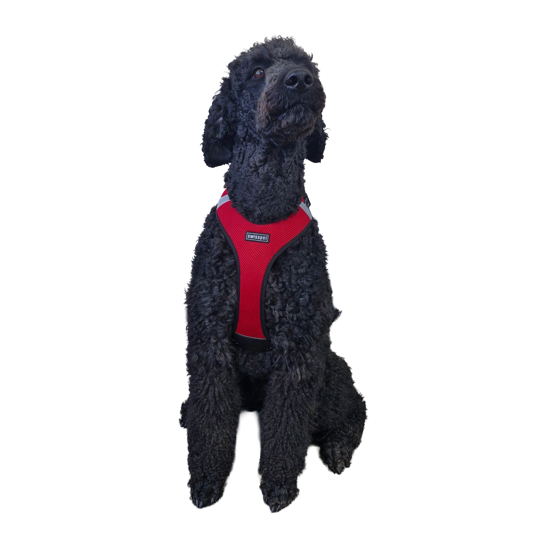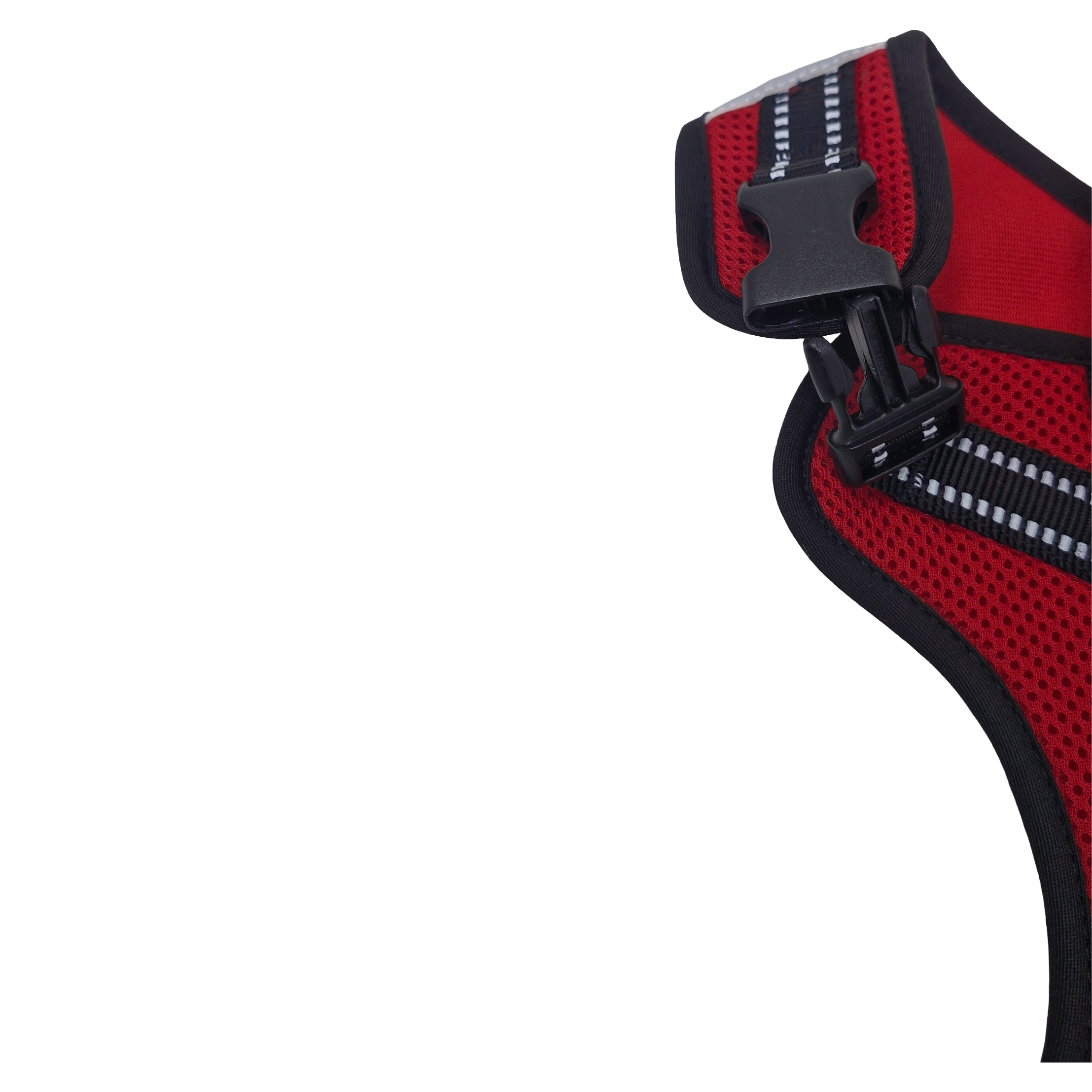 Das atmungsaktive Mesh Material ist robust und pflegeleicht. Besonders praktisch ist der dritte Verschluss im Halsbereich, durch die man das Geschirr nicht über den Kopf ziehen muss. Es lässt sich daher besonders einfach und schnell an- und ausziehen. Ängstliche Hunde, Welpen, oder auch Hunde, die bereits schlechte Erfahrungen mit dem Anziehen von Geschirren gemacht haben, profitieren dadurch.