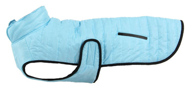 Trendiger Hundemantel im Daunenlook von SwissPet. Innenseite mit kuscheligem Wärme-Fleece. Der Daunenmantel lässt sich dem Hund sehr einfach anziehen. Die Hundejacke in schickem hellblau ist für kleine bis mittelgroße Hunde geeignet.