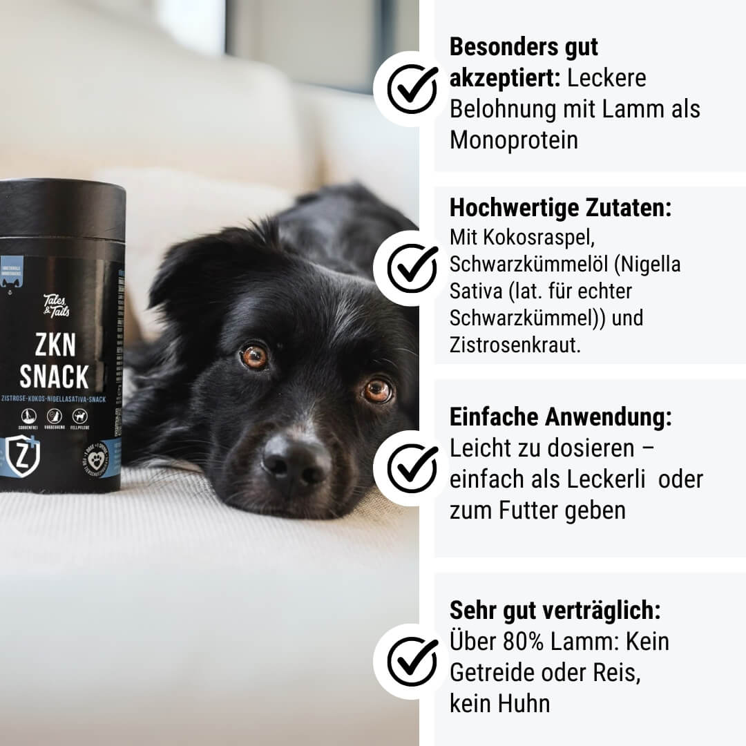Ein funktionaler Snack, der nicht nur schmeckt, sondern auch natürlich unterstützt – perfekt für aktive Hunde, Wanderfans oder empfindliche Vierbeiner, die draußen unterwegs sind.