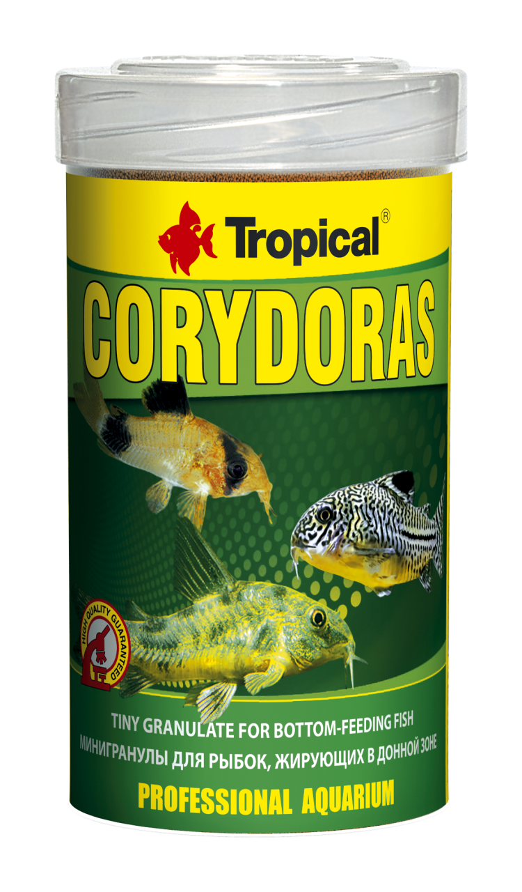 CORYDORAS ist ein Alleinfuttermittel in Form von einem winzigen, sinkenden Granulat (ca. 1-mm), das für die tägliche Fütterung von Corydoras und anderen kleinen Welsen und Schmerlen sowie allen anderen am Boden fressenden Fischen bestimmt ist.