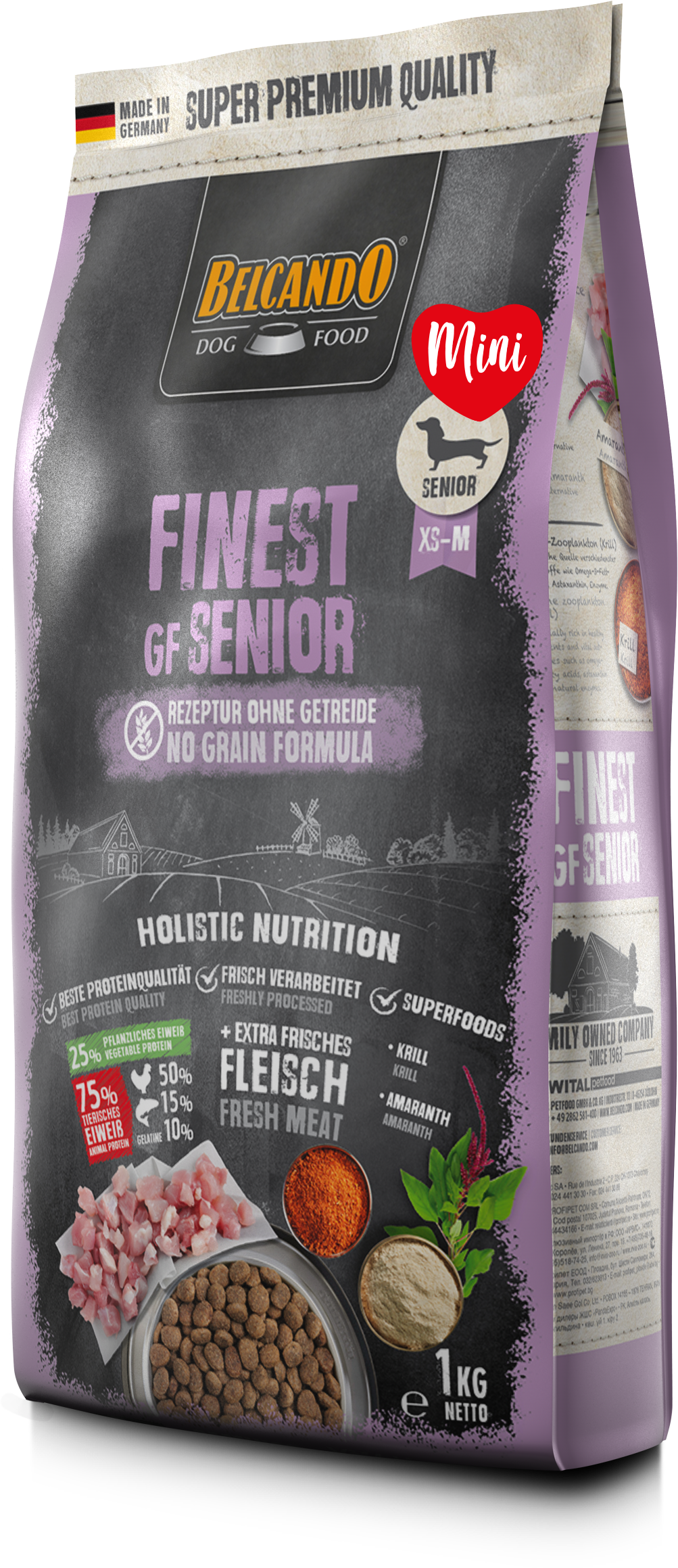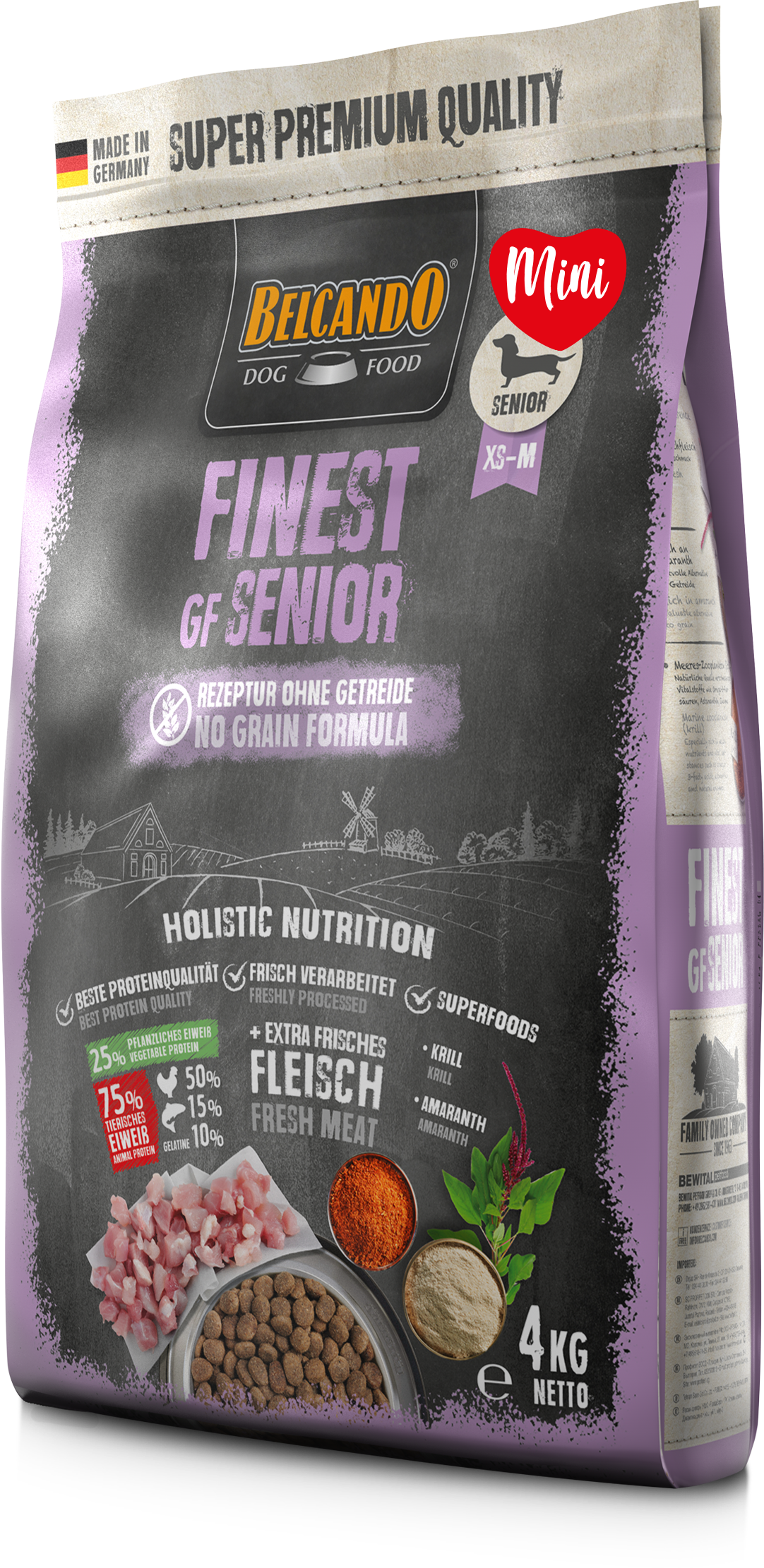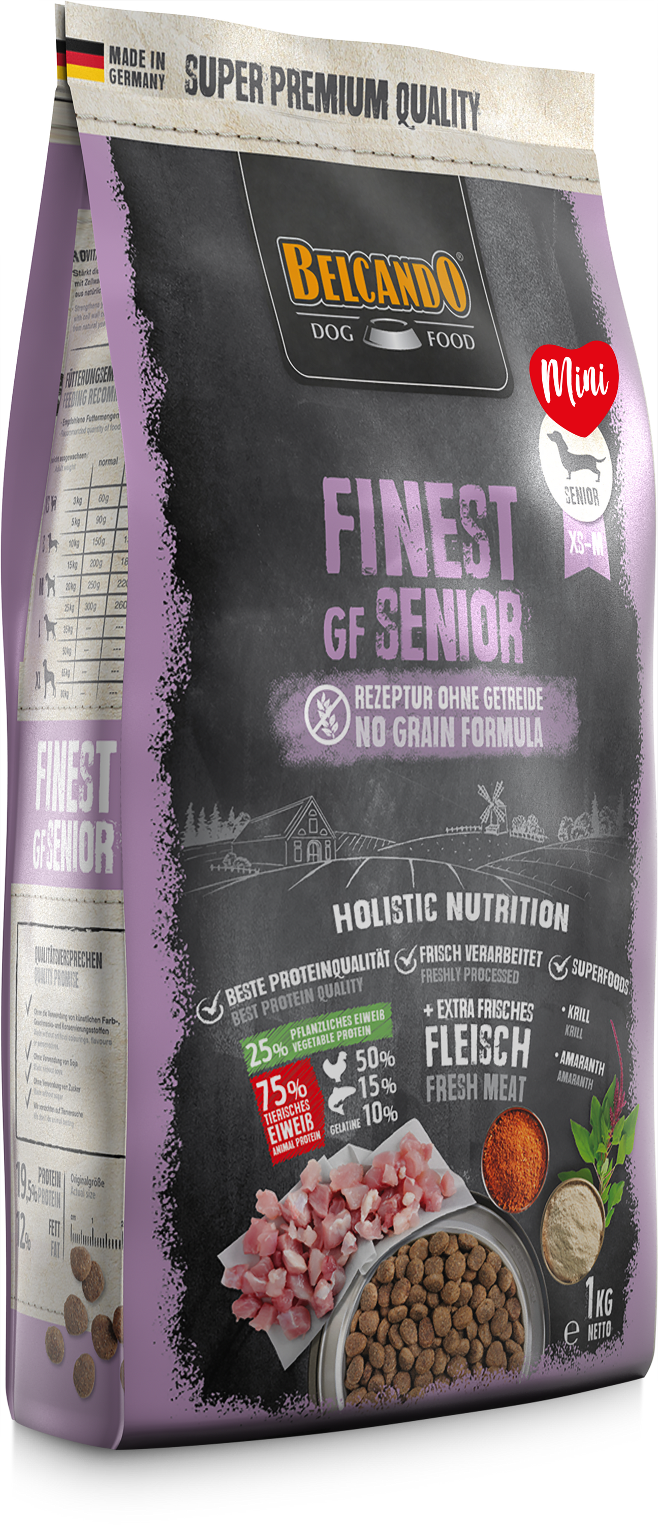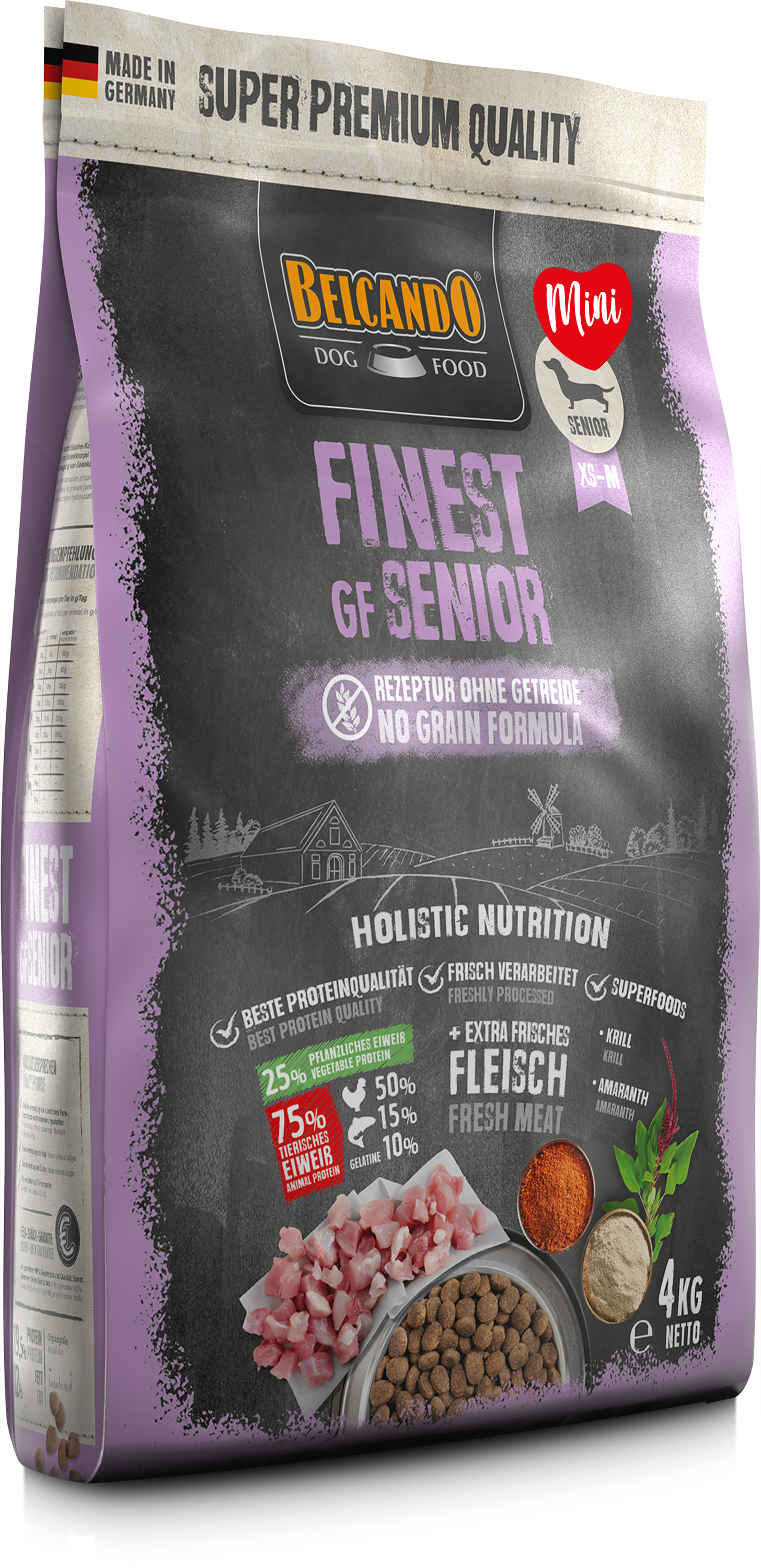 Die besonders schmackhafte Alternative für ältere Hunde mit Sensitivität auf Getreide. Beste Rohstoffe wie Amaranth, nährstoffreicher Krill und extra viel frisches Geflügel versorgen den Vierbeiner mit allem, was er im fortgeschrittenen Alter benötigt. Erlaubt zudem die Umstellung von unseren Finest GF-Sorten auf eine altersgerechte Ernährung des kleinen Seniors in gewohnt hochwertiger Rezeptur ohne Getreide.