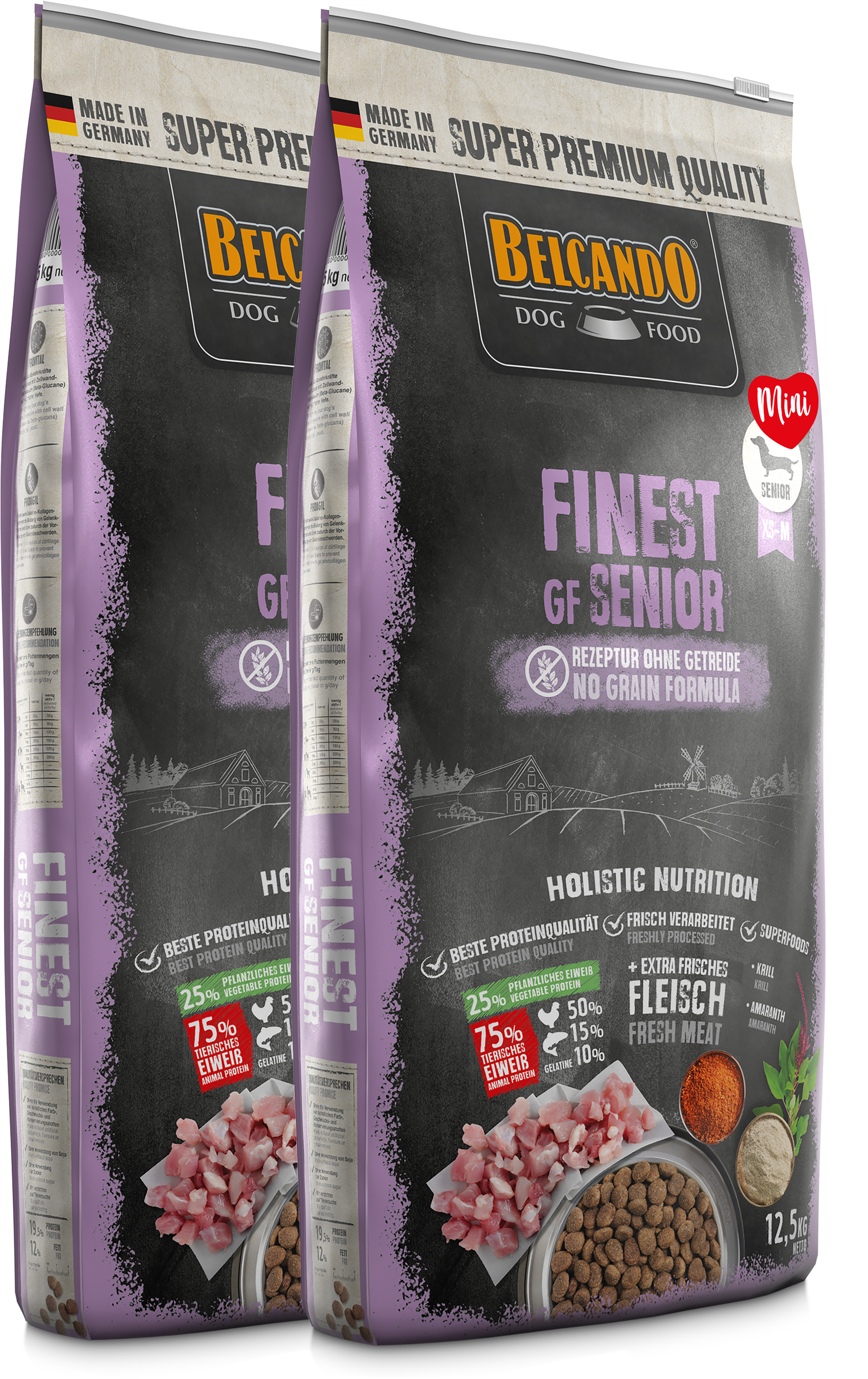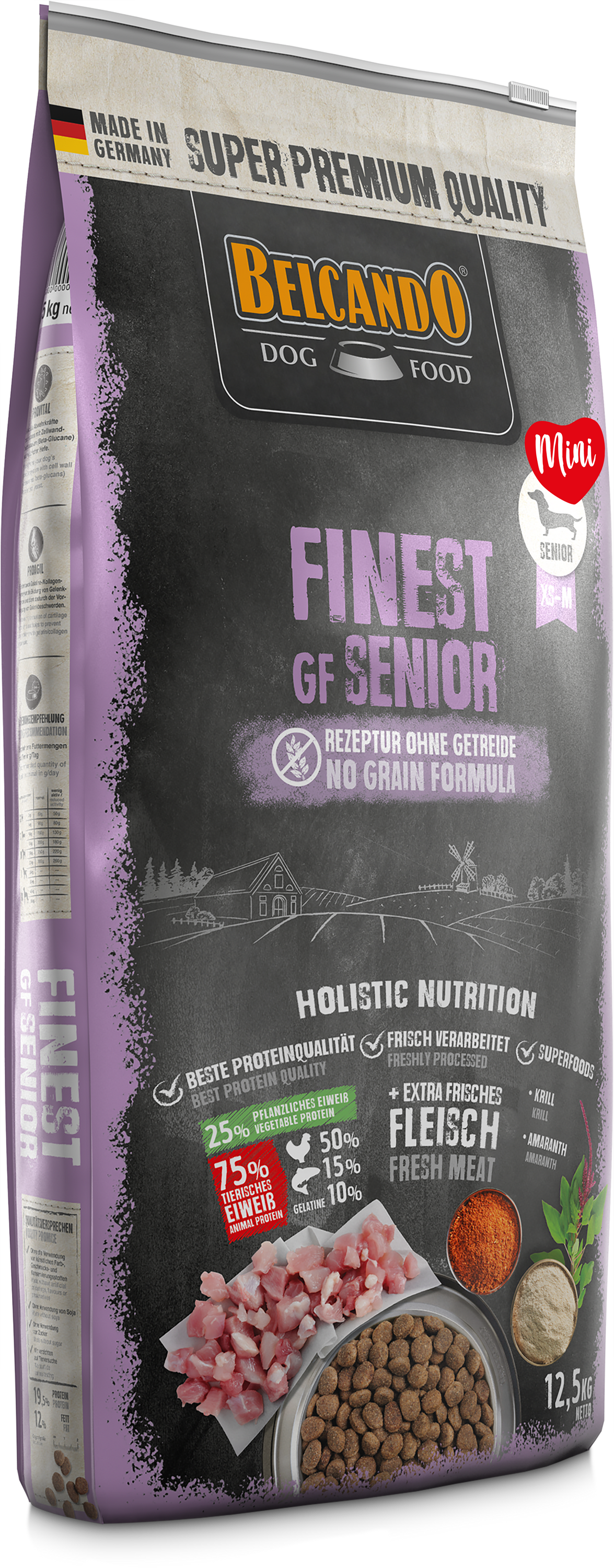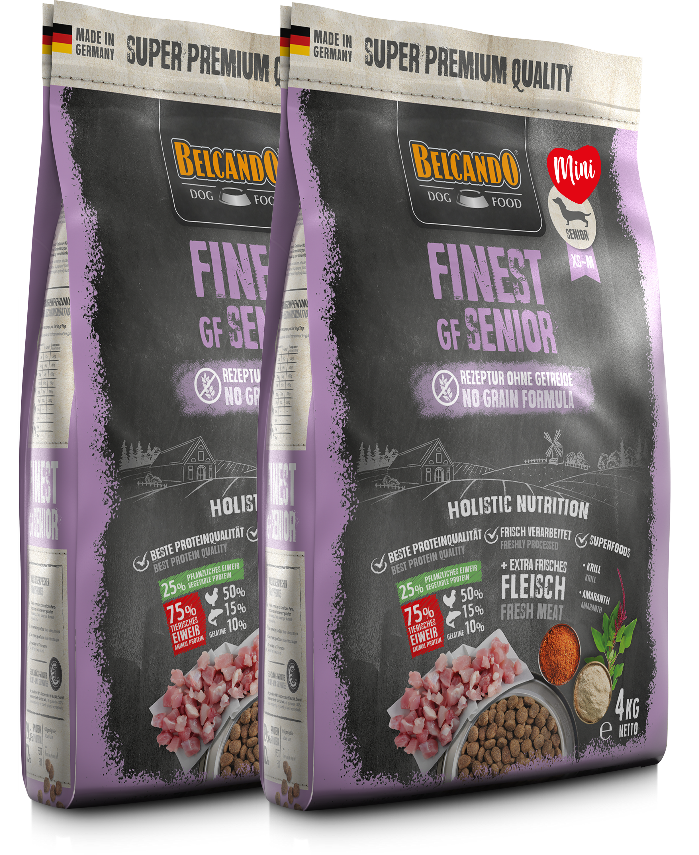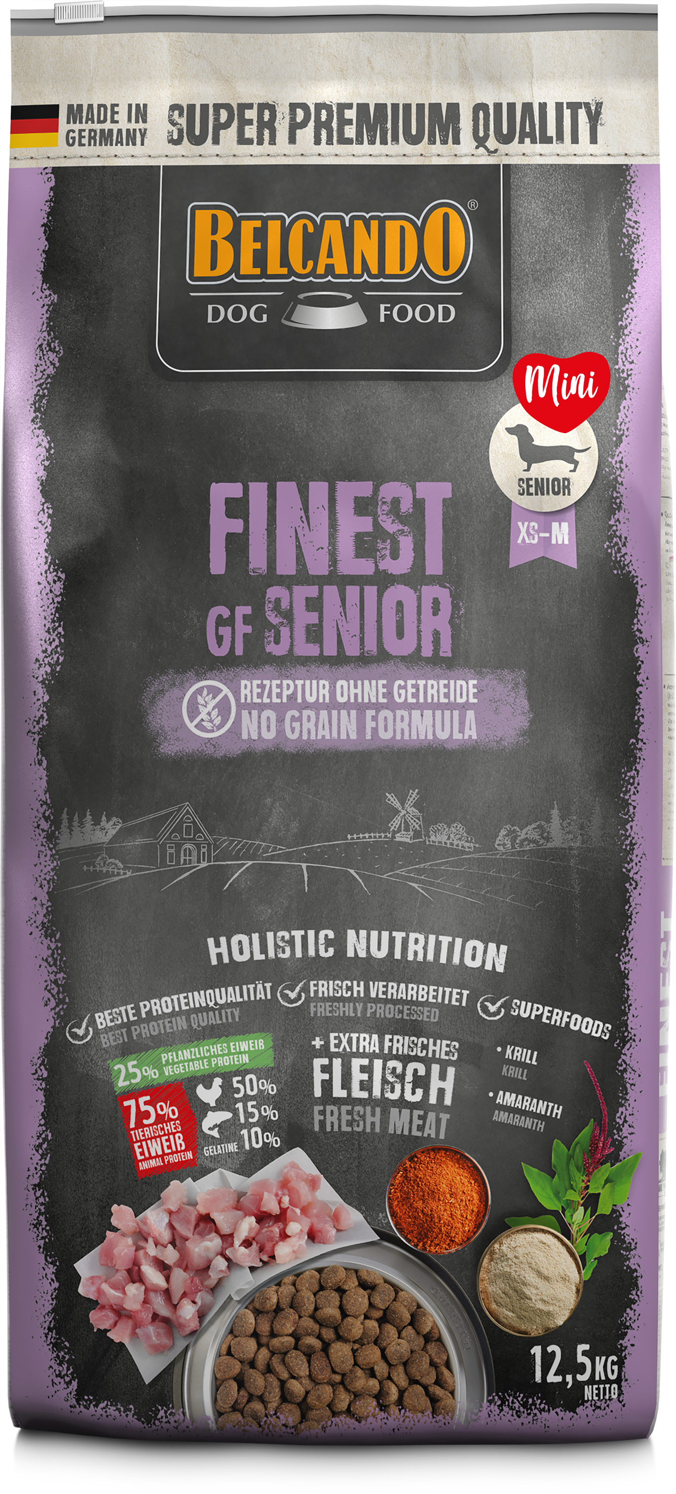 Die besonders schmackhafte Alternative für ältere Hunde mit Sensitivität auf Getreide. Beste Rohstoffe wie Amaranth, nährstoffreicher Krill und extra viel frisches Geflügel versorgen den Vierbeiner mit allem, was er im fortgeschrittenen Alter benötigt. Erlaubt zudem die Umstellung von unseren Finest GF-Sorten auf eine altersgerechte Ernährung des kleinen Seniors in gewohnt hochwertiger Rezeptur ohne Getreide.
