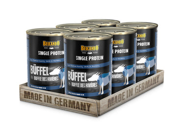 Unsere Dosennahrung BELCANDO® Single Protein gibt es in sechs ausgesuchten Fleischsorten. Es sind keine weiteren Zusätze enthalten. Single Protein Feuchtnahrung ist in Kombination mit dem Ergänzungsfuttermittel BELCANDO® Mix it GF eine ideale Proteinquelle bei Eliminationsdiäten, bei denen Sie herausfinden, auf welche Fleischsorten Ihr Tier unter Umständen empfindlich reagiert.