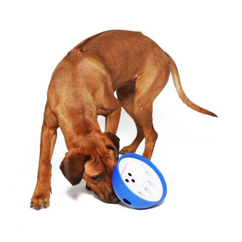 Um ein ungesundes Verschlingen des Trockenfutters zu verhindern, ist der Kick ´N Feed Napf ideal. Durch seine spezielle runde Form lässt sich der Napf einfach bewegen, um hin und wieder etwas Futter aus den verschiedenen Öffnungen fallen zu lassen. Dies verlangsamt das Fressen und gestaltet es zugleich wesentlich spannender. Die Beschäftigung kann dazu beitragen, dass der Hund ausgeglichener und zufriedener ist. Durch die Gummibeschichtung an der Unterseite verrutscht der Napf nicht. Hergestellt aus robustem Kunststoff ist er einfach zu reinigen, sowie spülmaschinengeeignet. Versuchen Sie es selbst - zeigen Sie Ihrem Hund langsam, wie das Futter bei Bewegung durch den Napf fällt und er an sein Futter gelangt. Durch dieses Spiel wird sich ihr Hund sicherlich gerne mehr Zeit für sein Futter nehmen!