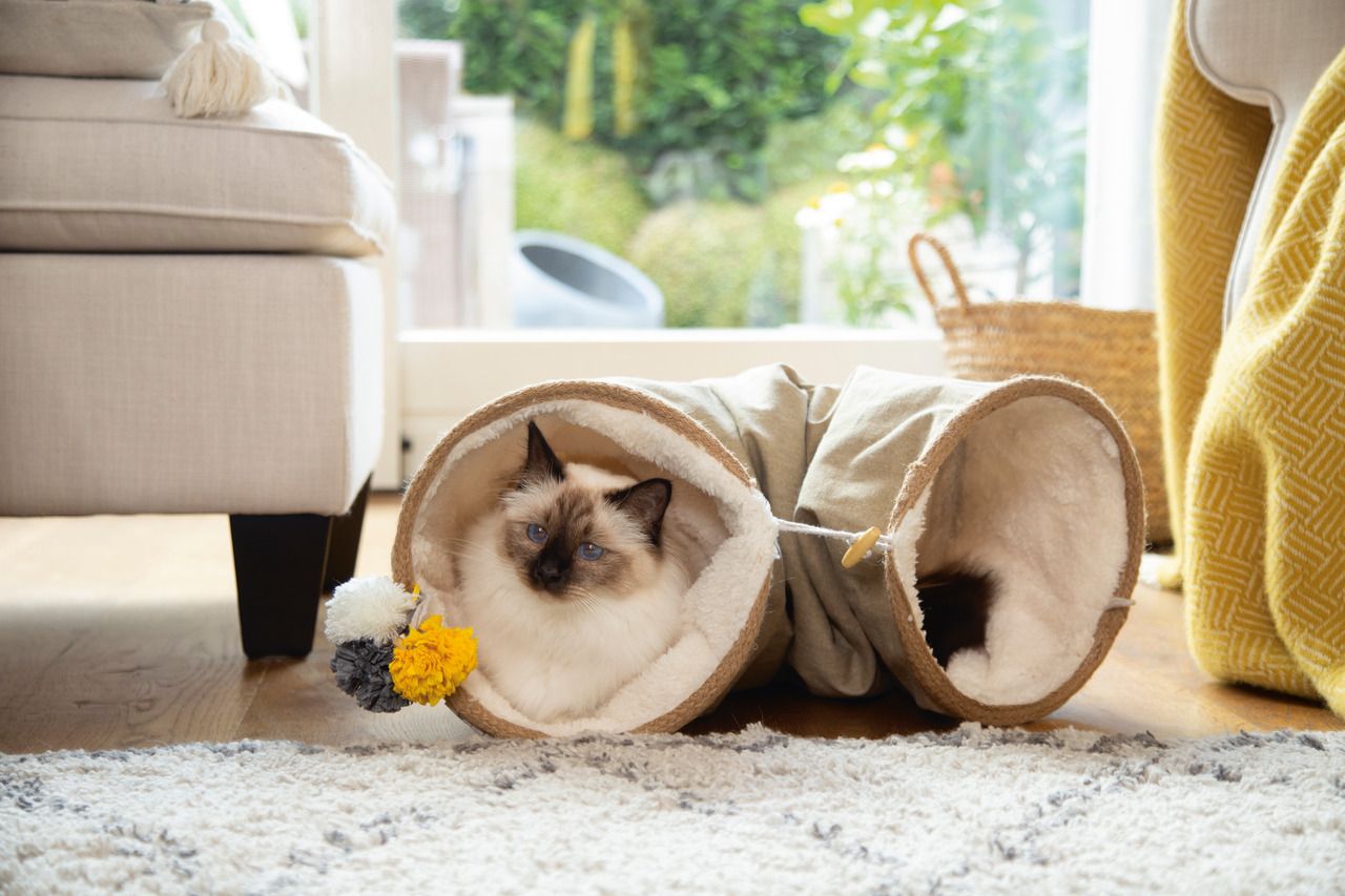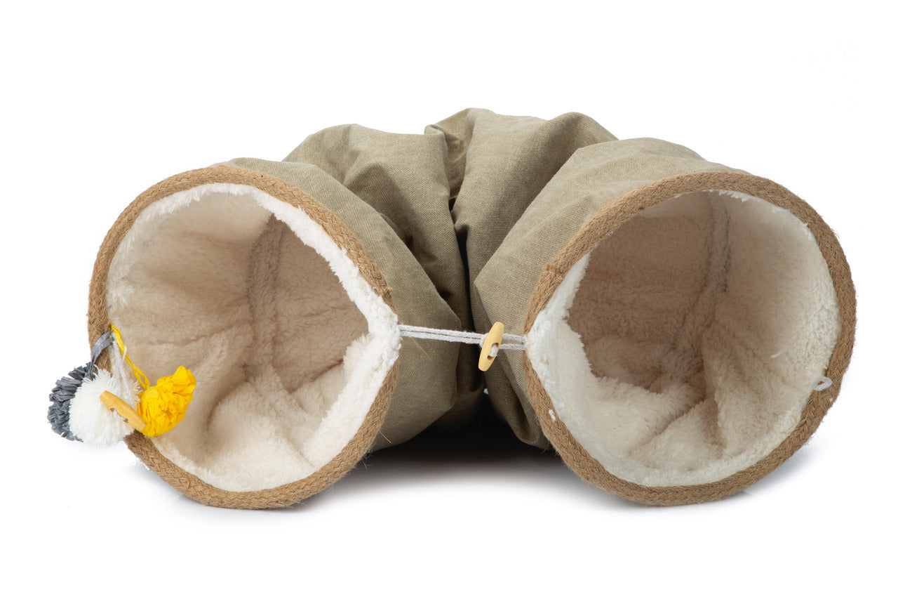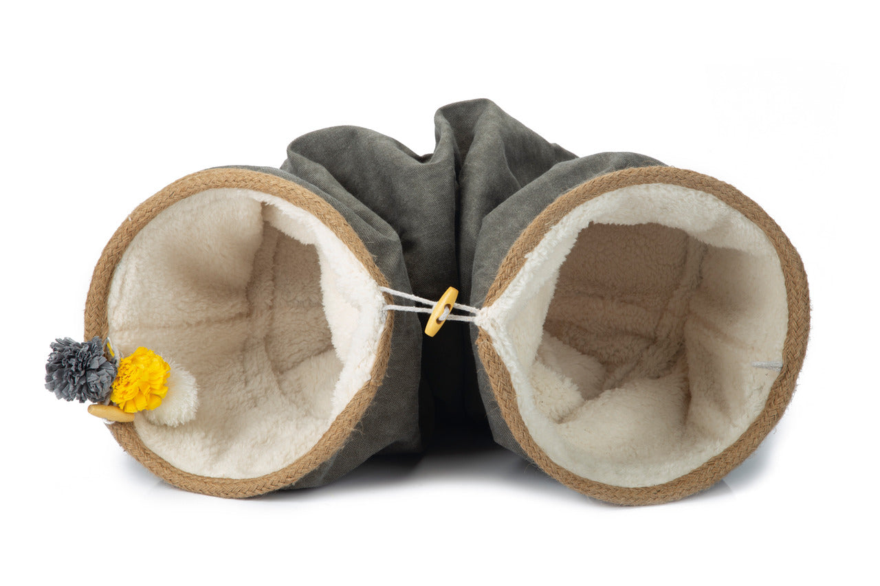 Spielen, Erkunden und Verstecken – 3 Dinge, die Katzen gerne machen. All dies macht der Designed by Lotte Katzentunnel Fenn möglich. Der textile Tunnel weckt aber nicht nur das Interesse deiner Katze, aufgrund der dezenten Farbwahl fügt er sich auch harmonisch in jede Einrichtung ein. Größenangaben: 25 cm x 90 cm.