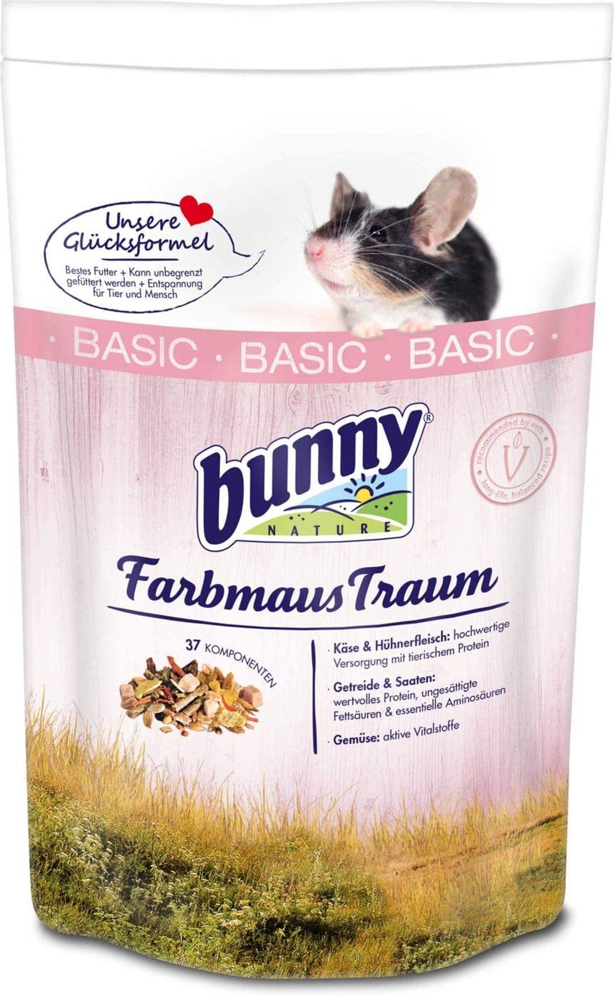 Bunny FarbmausTraum BASIC ist ein hochwertiges Alleinfuttermittel für Farbmäuse, das eine ausgewogene Ernährungslösung für die spezifischen Bedürfnisse dieser Nager bietet.