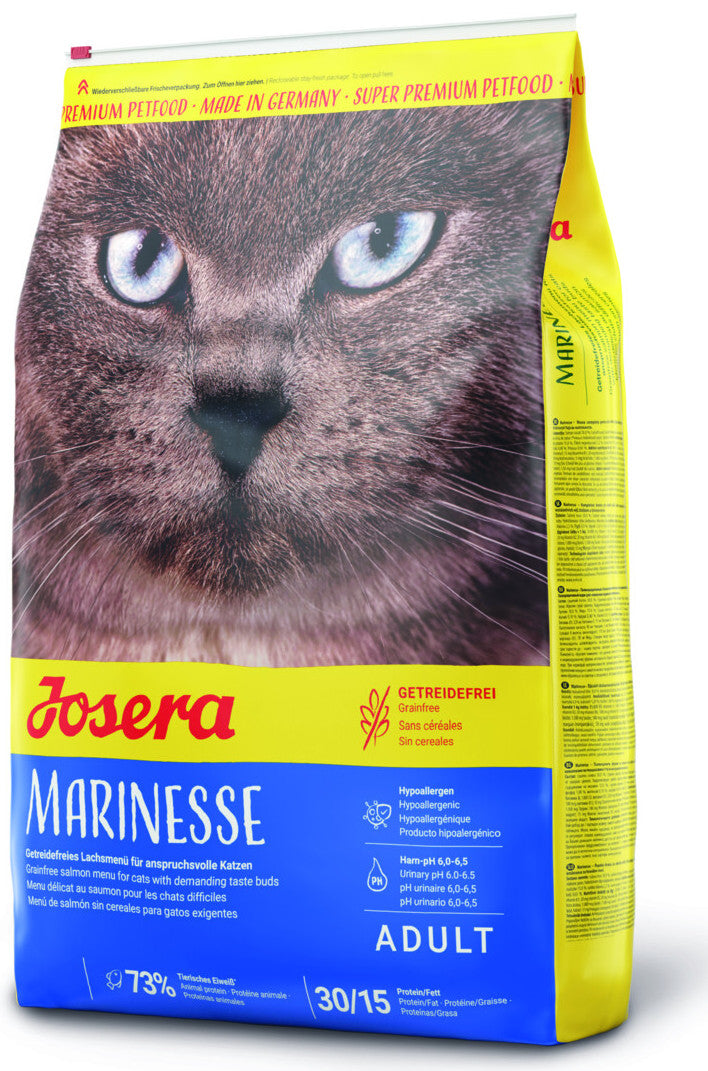 Ihre Katze liebt Fisch oder hat Unverträglichkeiten? Mit leckerem Lachs ist das hypoallergene Katzenfutter JOSERA Marinesse ideal für echte Fischliebhaber unter den Katzen und jene, die bedingt durch Futtermittelunverträglichkeiten besondere Ansprüche an ihre Ernährung haben.