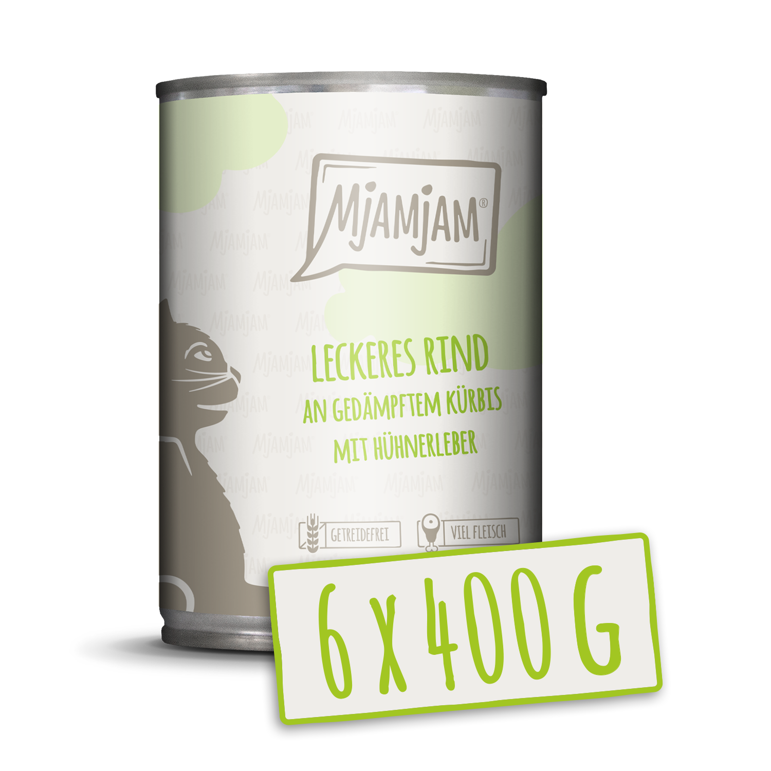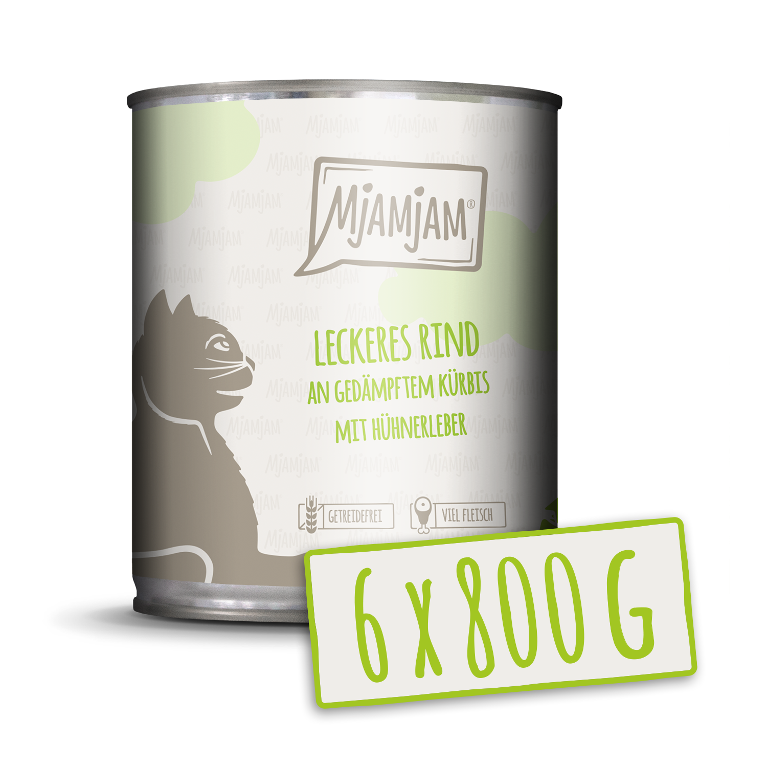 Dieses hochwertige Katzenfutter vereint frisches Rindfleisch mit nährstoffreichem Kürbis und Hühnerleber zu einer ausgewogenen, proteinreichen Mahlzeit. Die Rezeptur bietet deiner Katze ein schmackhaftes Nassfutter-Erlebnis mit wertvollen Vitaminen, Mineralstoffen und Spurenelementen – ideal für eine gesunde Ernährung. Der hohe Fleischanteil orientiert sich an einer artgerechten, natürlichen und beutegerechten Fütterung. Das Katzenfutter ist getreidefrei, ohne Zucker, künstliche Konservierungsstoffe, Geschmacksverstärker oder synthetische Bindemittel – bestens geeignet auch für ernährungssensible Tiere