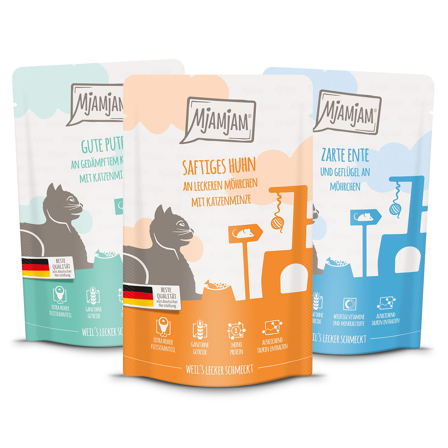 Dieses Mixpaket ist ideal für alle Katzen, die Geflügel lieben. Es enthält eine sorgfältig ausgewählte Vielfalt an schmackhaften Sorten wie saftiges Hühnchen mit Möhrchen, zarte Ente & Geflügel sowie hochwertige Pute. Jede Mahlzeit überzeugt durch einen besonders hohen Fleischanteil und natürliche Zutaten. Getreide, Zucker, künstliche Konservierungsstoffe, Geschmacksverstärker und synthetische Bindemittel werden vollständig vermieden. Das Nassfutter bietet deiner Katze eine artgerechte, beutenahe Ernährung mit abwechslungsreichen Rezepturen und bestem Geschmack – perfekt für anspruchsvolle Feinschmecker auf Samtpfoten.