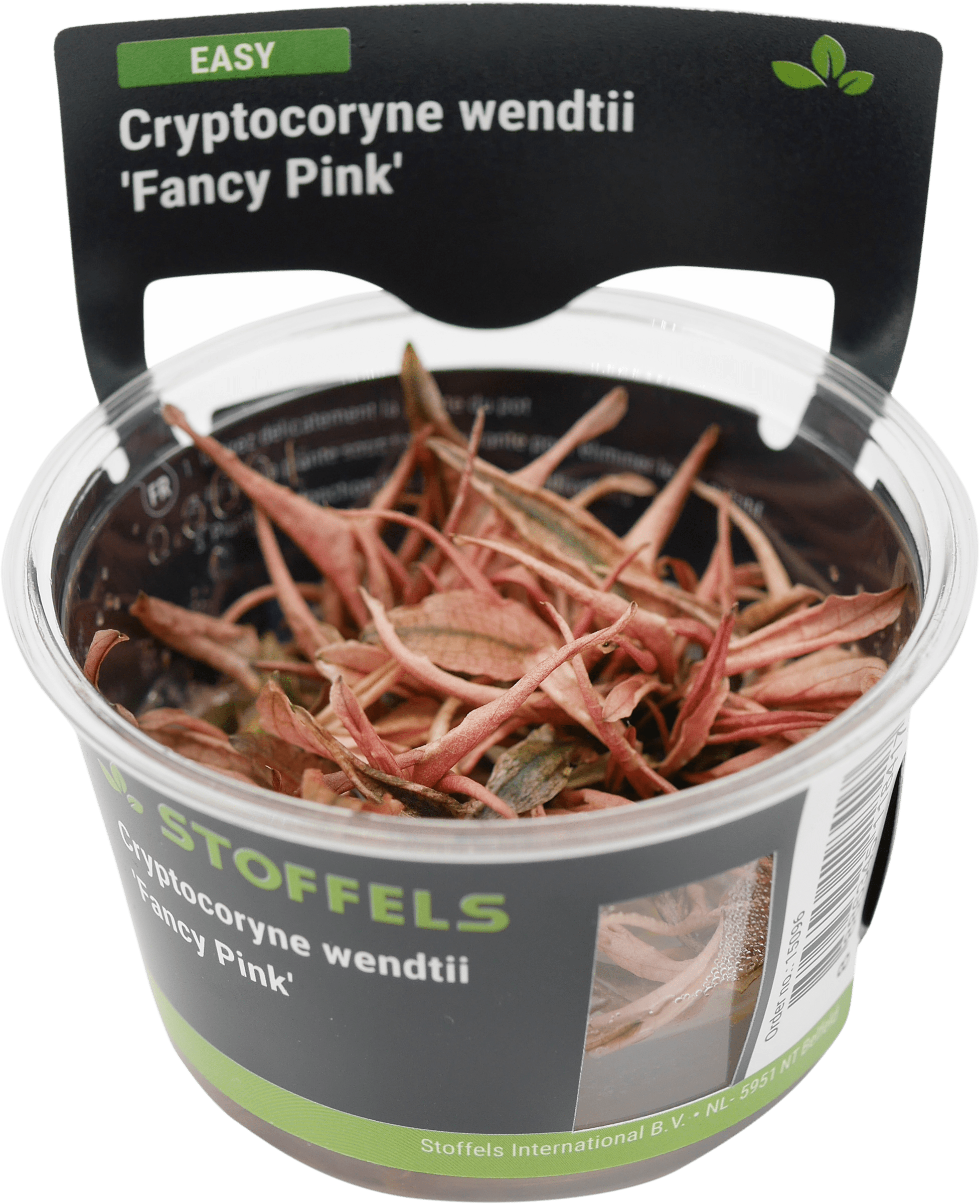 Cryptocoryne wendtii 'Fancy Pink' ist eine natürliche Mutation mit auffälligen Blättern in zartem Rosa bis tiefem Rosafarben. Diese spezielle Pflanze zählt zu den außergewöhnlichsten Varianten innerhalb der Cryptocorynen. Sie wird ausschließlich durch Meristemvermehrung im Labor kultiviert und in einer transparenten Kulturschale als sterile In-Vitro-Pflanze angeboten. Dies garantiert eine Freiheit von Schnecken, Algen und Pestiziden.