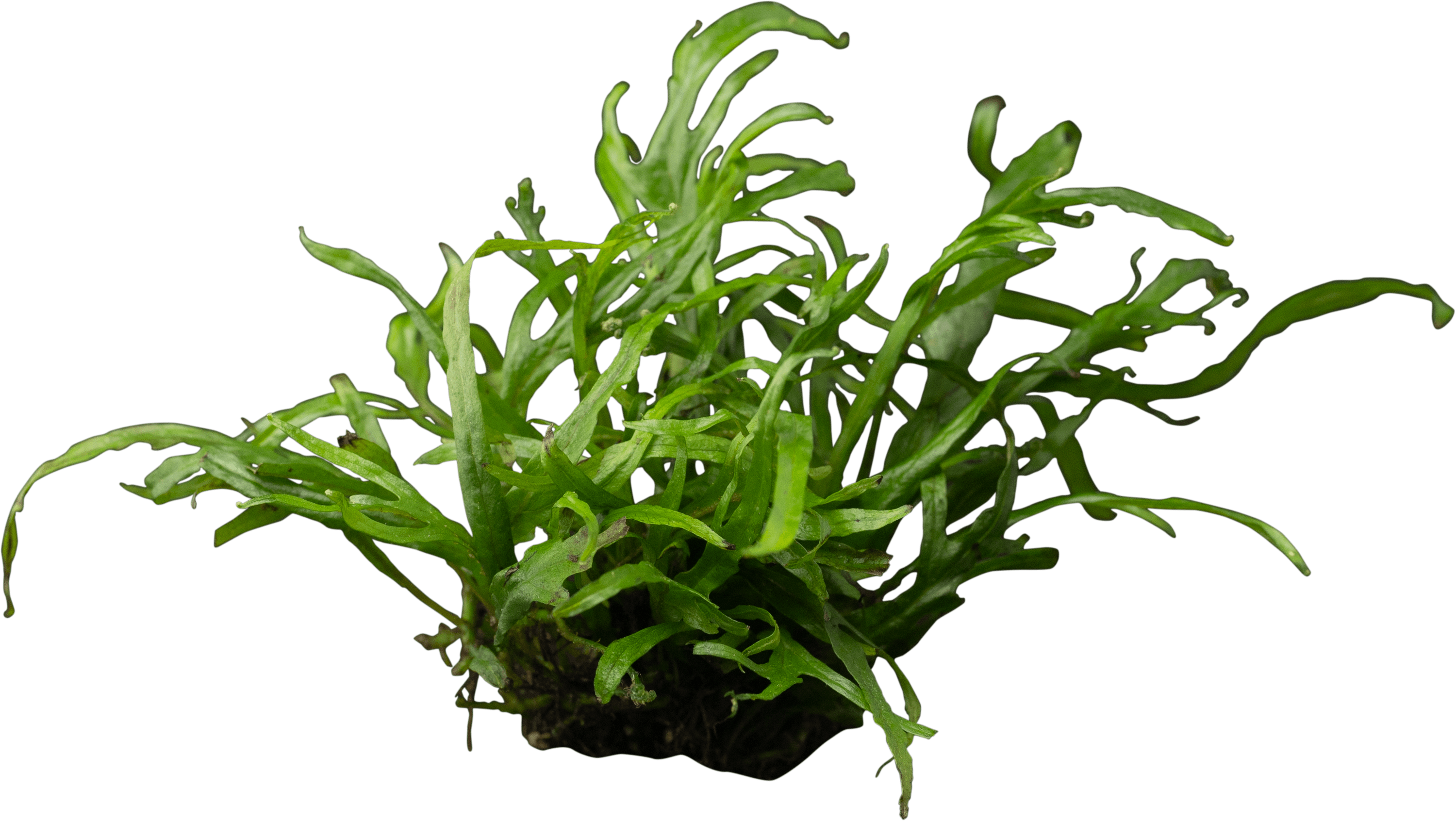 Die Aquarienpflanze 'Microsorum pteropus 'Trident'' zeichnet sich durch ihre feinen, gefächerten Blätter aus, die in unterschiedlichen Graden gespalten sind. Diese Pflanze hat schmale Mittel- und Seitenlappen, die ihr eine dekorative Erscheinung verleihen. Wie die natürliche Variante des Java-Farns ist auch die 'Trident'-Sorte pflegeleicht und benötigt wenig besondere Pflege. Sie findet sowohl in großen Aquarien als auch in kleineren 30-Liter Nano-Cubes Platz und eröffnet vielfältige Gestaltungsmöglichkeiten im Aquascaping. Für eine auffällige Optik empfiehlt sich der Einsatz ausgewachsener Exemplare, die über freistehende Wurzeln wachsen und sich elegant durch das Aquarium ziehen.