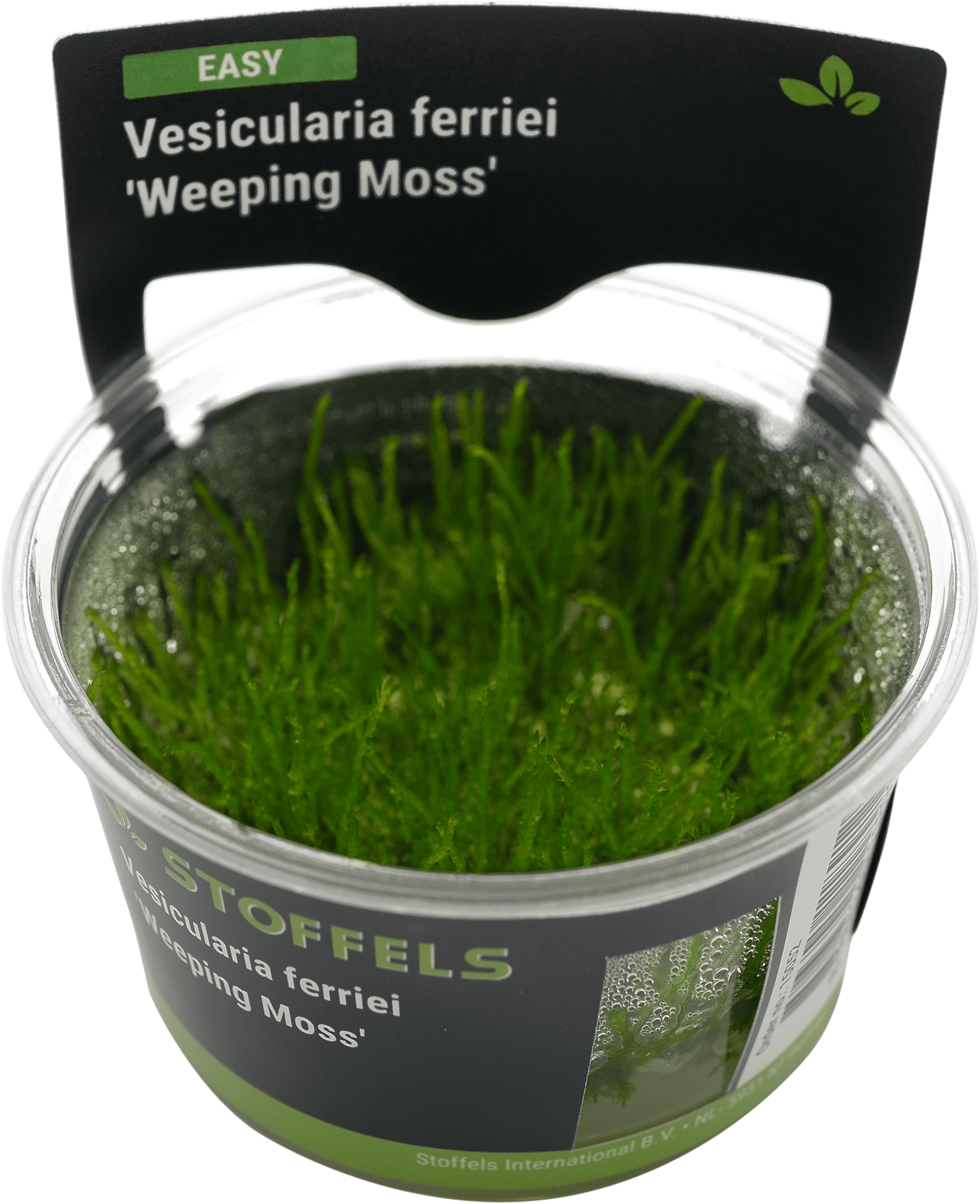 Vesicularia ferriei 'Weeping Moss' ist eine Aquarienpflanze mit einer charakteristischen Trauerwuchsform, die sich durch hängende, filigrane Triebe auszeichnet. Diese Moosart wächst gleichmäßig und bildet dichte Teppiche, die sich nahtlos in aquatische Landschaften integrieren. Das Trauermoos ist in vitro kultiviert, was eine sichere und pestizidfreie Einführung in das Aquarium gewährleistet. Es bietet Lebensraum für kleine Organismen und trägt zur Verbesserung der Wasserqualität bei, indem es Nährstoffe aufnimmt und Sauerstoff produziert.