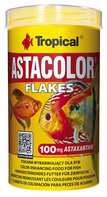 ASTACOLOR ist ein zutatenreiches, farbverstärkendes Flockenfutter für die tägliche Fütterung von Diskusfischen, besonders roter Exemplare, und andere Fische, bei denen eine stärkere und bessere Ausfärbung gewünscht wird.