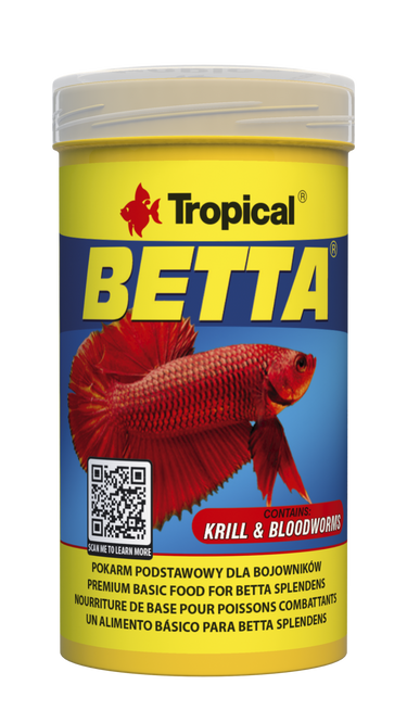 BETTA ist ein zutatenreiches Flocken-Alleinfutter für die tägliche Fütterung von Kampf- und anderen kleinen Labyrinthfischen, die sich vorzugsweise von kleinen Wasserorganismen ernähren.