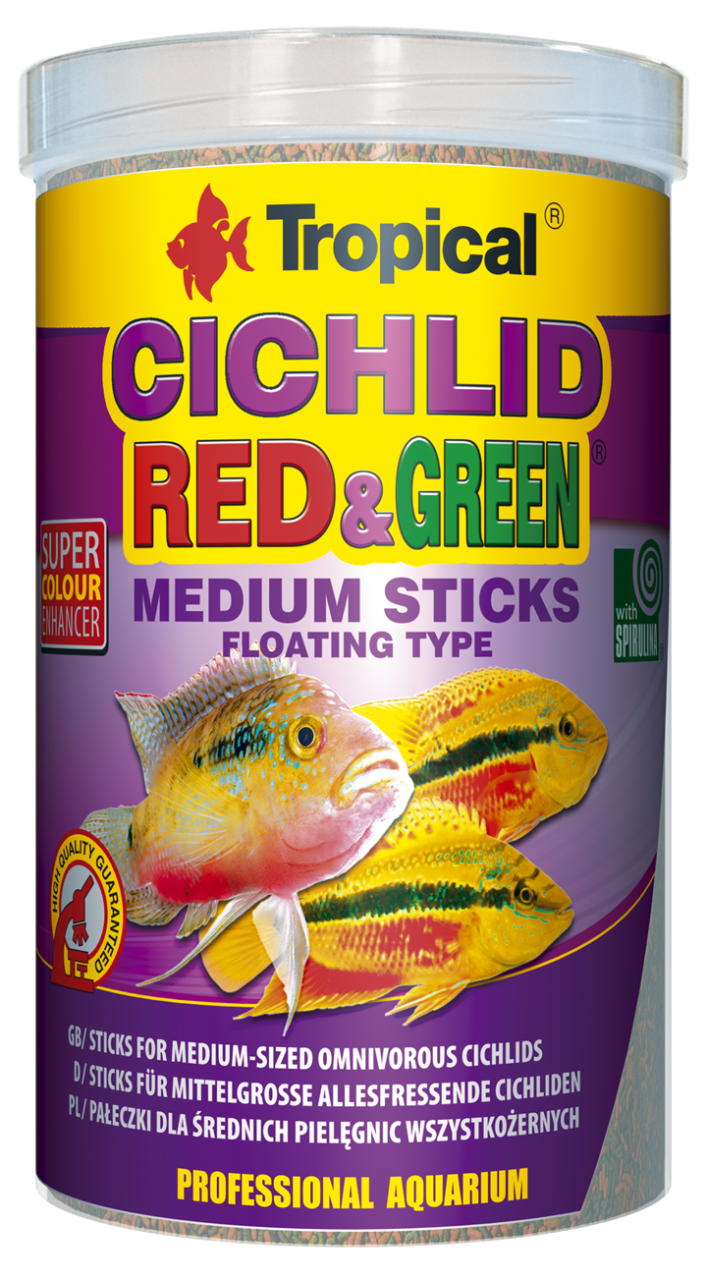 CICHLID RED & GREEN MEDIUM STICKS ist ein Basisfutter in Form von Sticks zur täglichen Fütterung von mittelgroßen Cichliden.