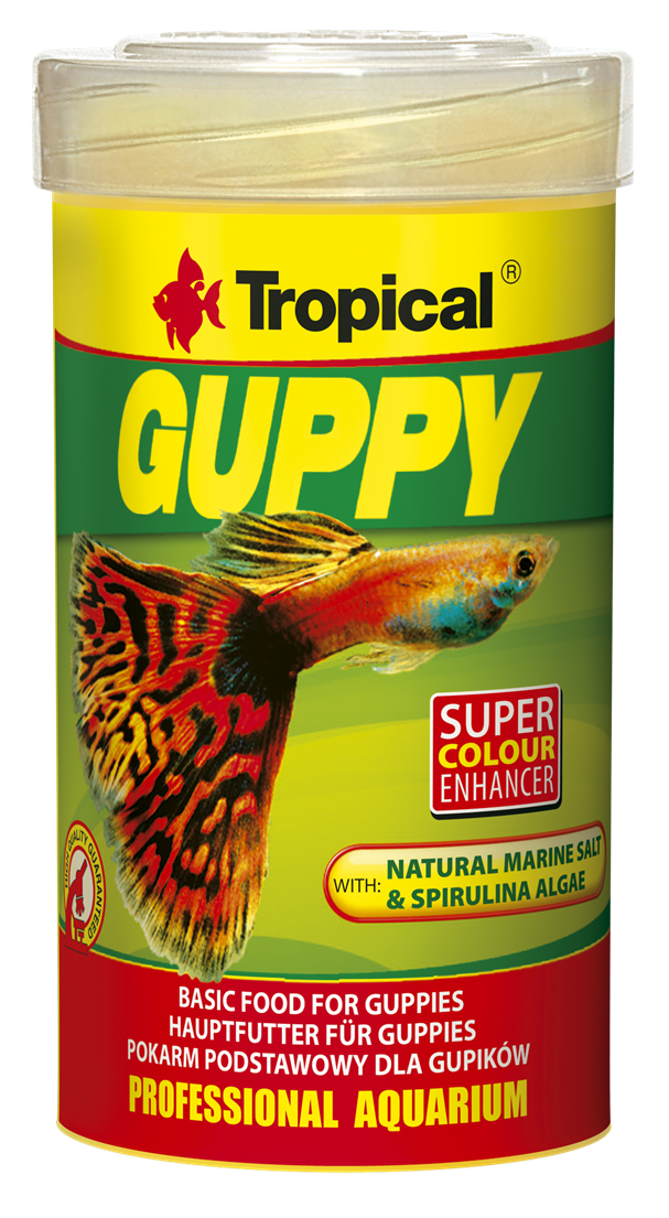 GUPPY ist ein Basisfutter mit Meersalz für Guppys. Das zutatenreiche Flockenfutter ist für die tägliche Fütterung von Guppys und anderen lebend gebärenden Fischen.