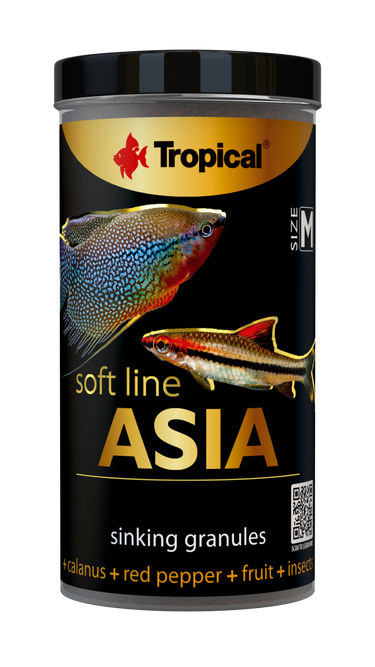 SOFT LINE ASIA SIZE M ist ein weiches Futter in Form von sinkenden Granulatkörnchen (ca. 2mm) für alles- und fleischfressende Fische aus Asien.