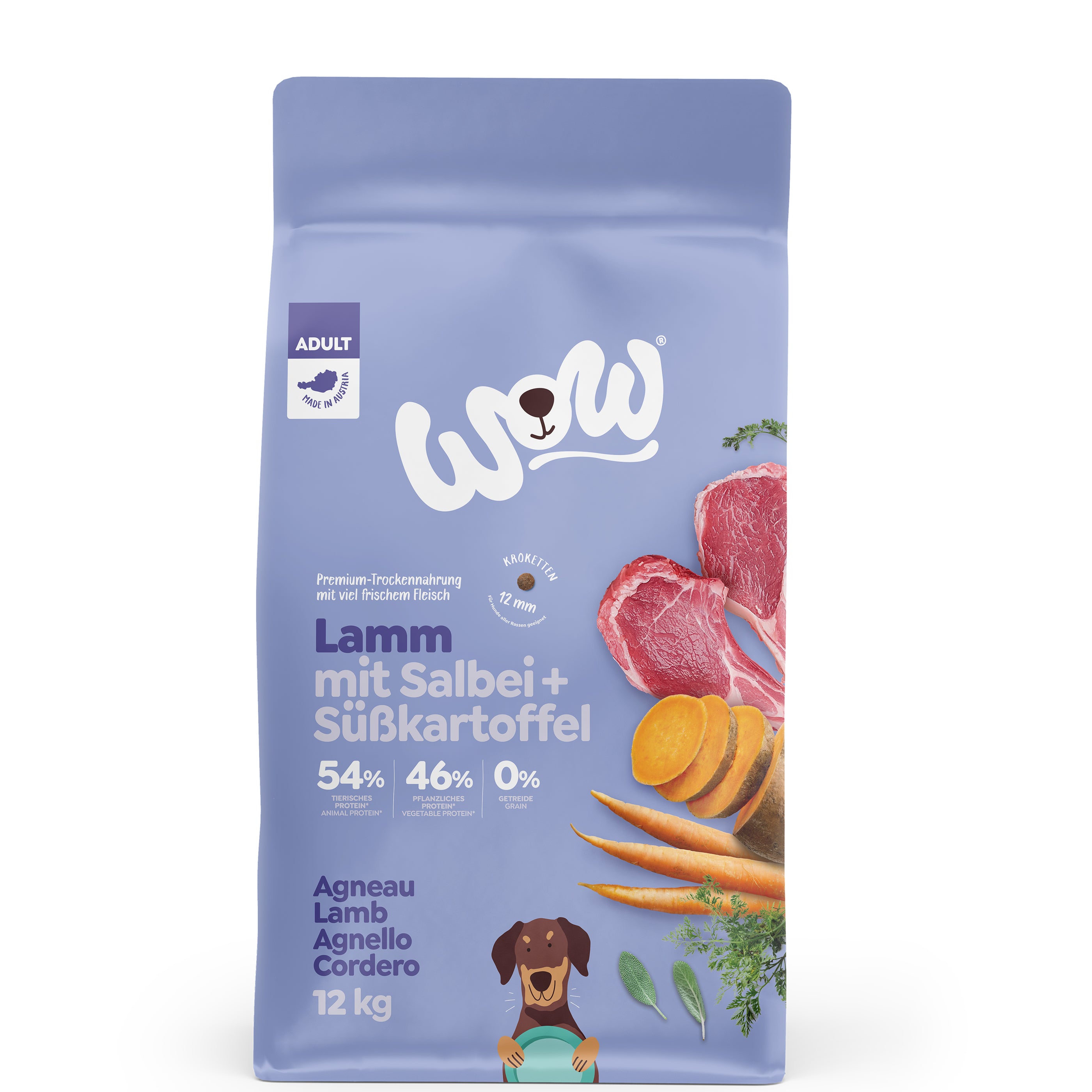 Lamm 46% (Frisches Lamm 28 %, Lammprotein getrocknet 18 %), Kartoffeln 18%, Erbsen, Süßkartoffeln 8%, Geflügelfett, Rübenschnitzel (entzuckert), Spinat 1%, Lachsöl, Leinsamen, Rote Rüben 0,8%, Kräuter, Kamille 0,1%, Salbei 0,1%, Karotten 0,1%, Yucca Schidigera, Mineralstoffe, FOS 0,1%, MOS 0,1%